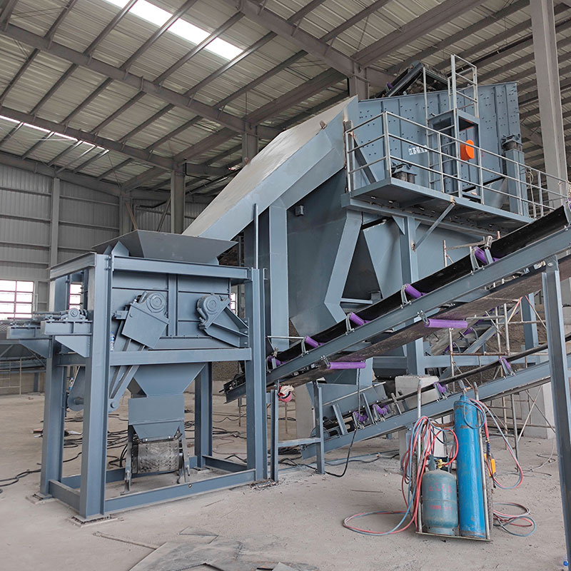单辊式一级破碎机的破碎辊与液压驱动的推压装置配合工作,破碎效率高。低转速配合可动的缓冲板可实现柔性分离。破碎辊上面的耐磨件采用铣刨机的标准破刀头,耐磨性好,更换方便。